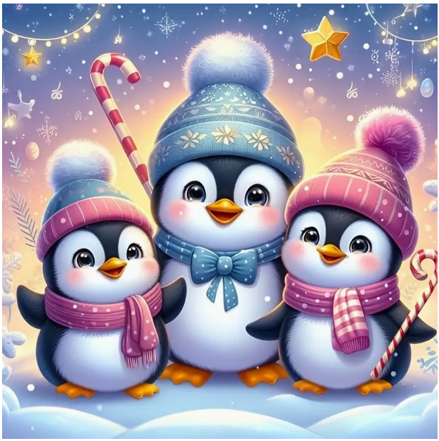 Diamantové malování s motivem 3 vánoční tučňáků
