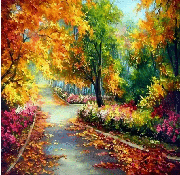 Diamantové malování s motivem Podzimní cesty padajícím listím
