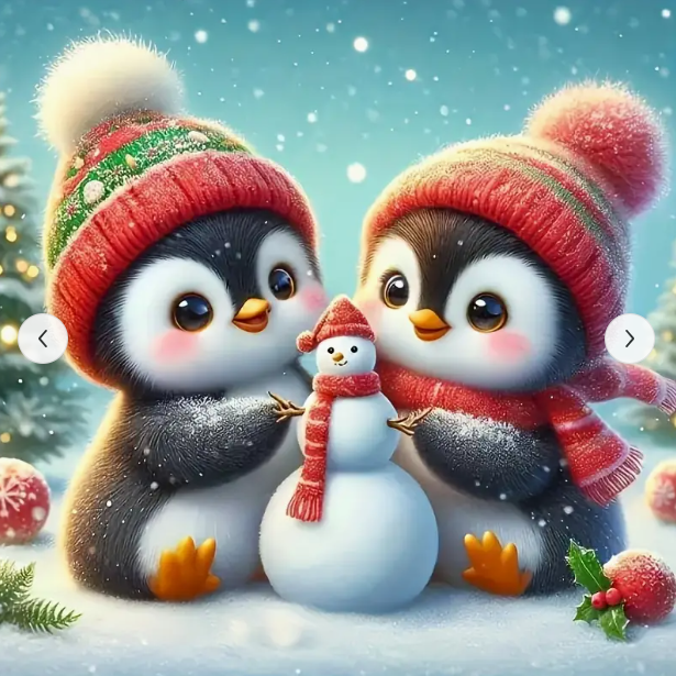 Diamantové malování s motivem Tučňáků stavějících sněhuláka