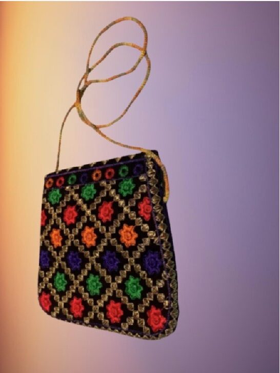 Látková kabelka s všitými aplikacemi Rozměry: 21×20 cm