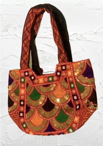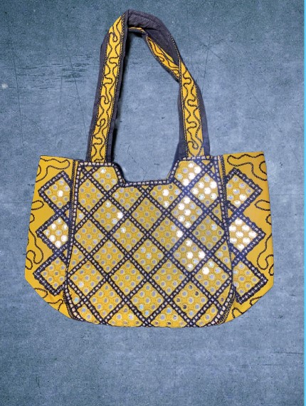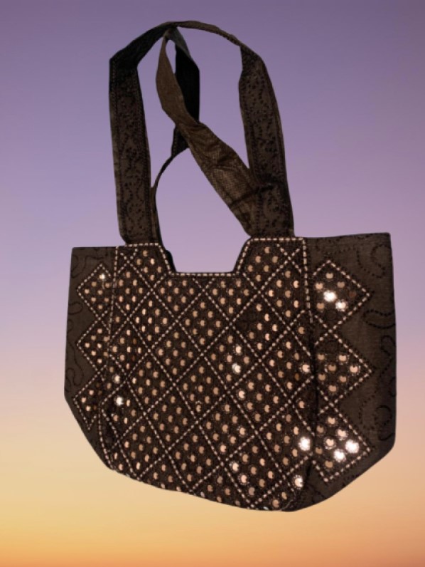 Ručně šitá látková kabelka s všitými zlatými aplikacemi