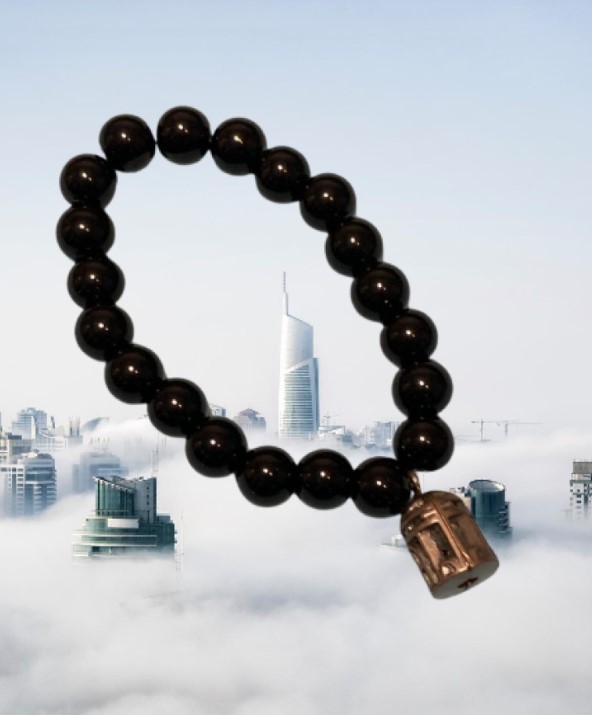 Černý korálkový náramek s přívěskem lucerny