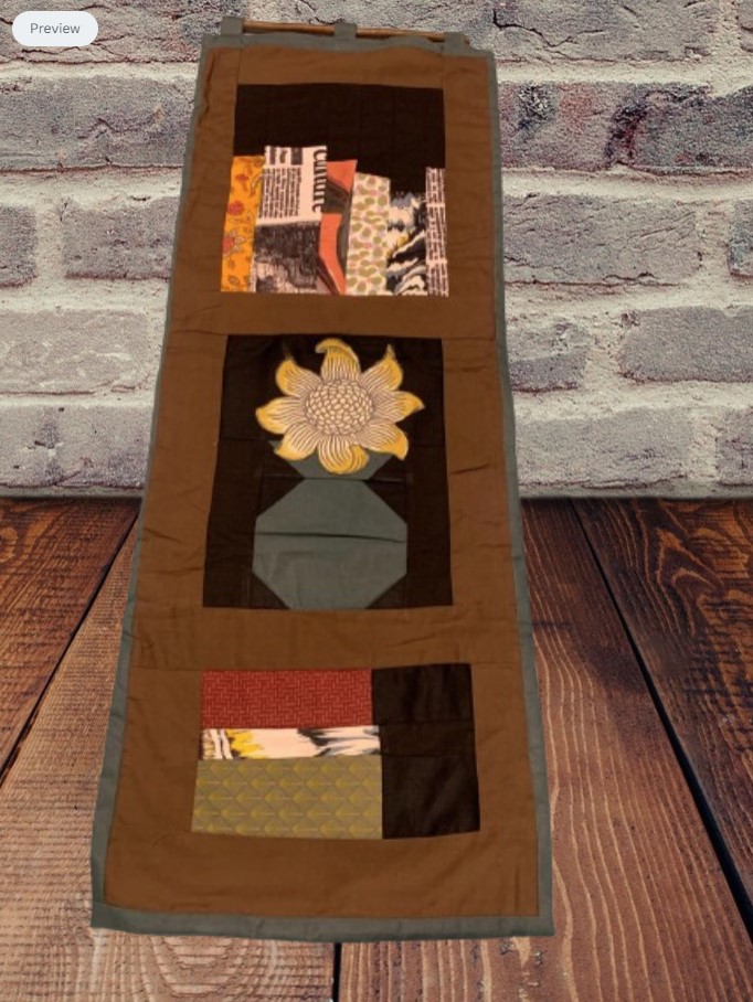 Ručně vyrobená látková dekorace na zeď.