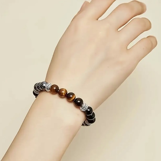Náramek z minerálů – Turmalín/Tygří oko/Obsidian