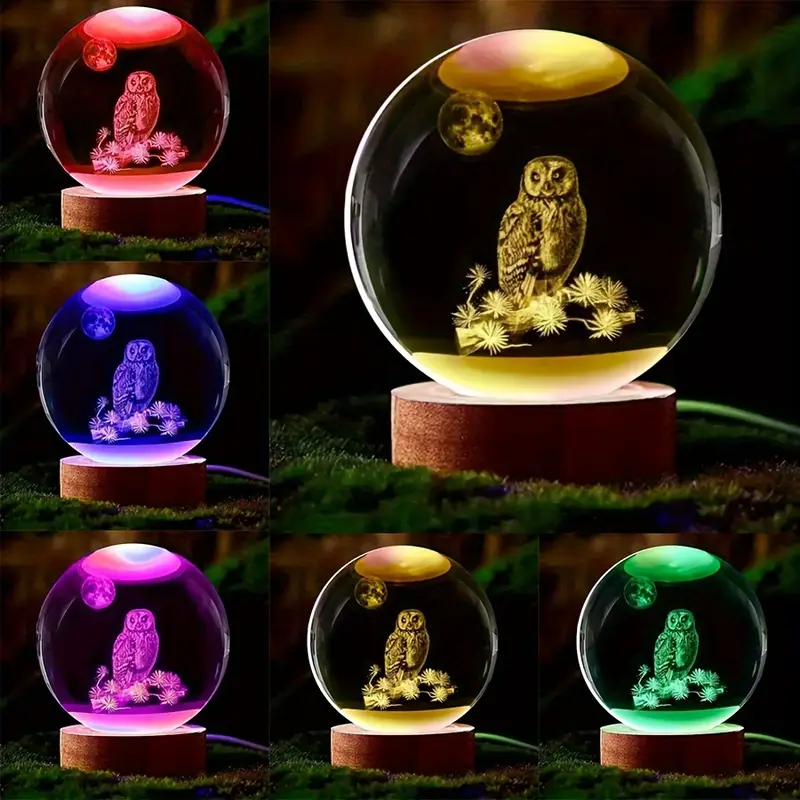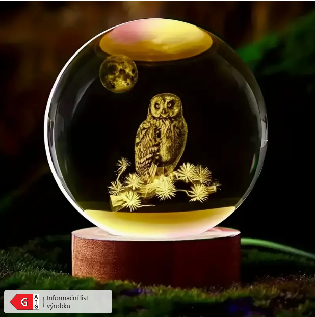 Noční světlo ve tvaru koule s motivem sovy s teplým světlem