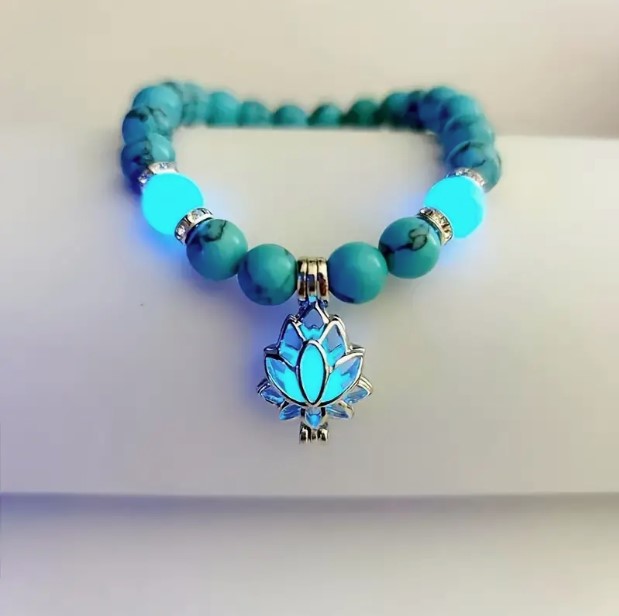 Tyrkysový korálkový náramek v bohémském stylu – tyrkys doplněn svítícími korálky.